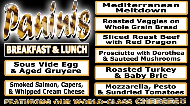 - Paninis crafted with care, such as the decadent Smoked Salmon and Italian Prosciutto & Gouda, promise a satisfying bite.